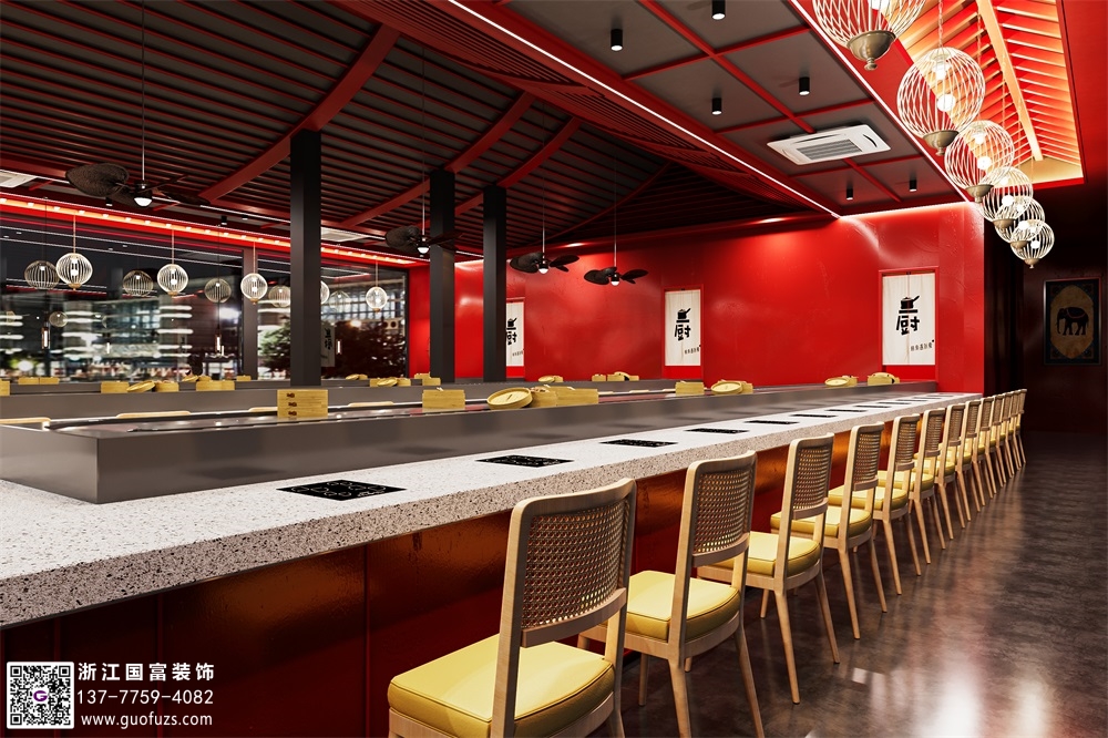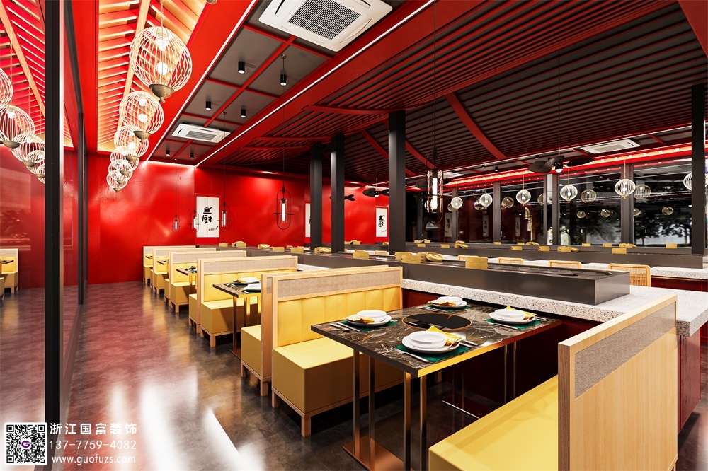 杭州旋轉(zhuǎn)小火鍋餐廳裝修設(shè)計(jì)案例