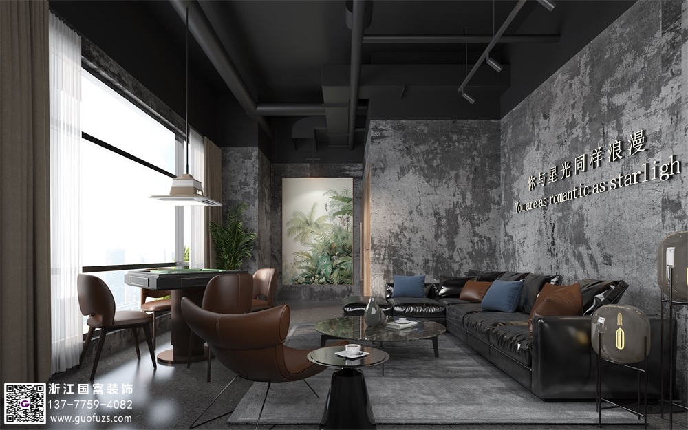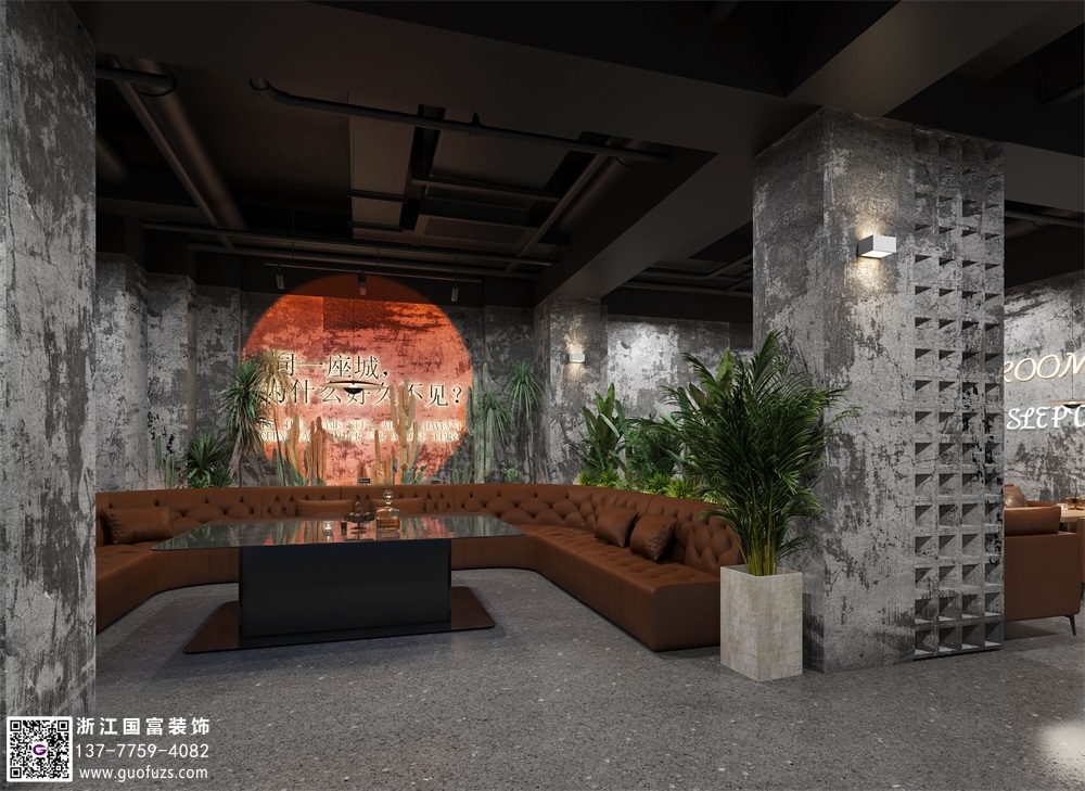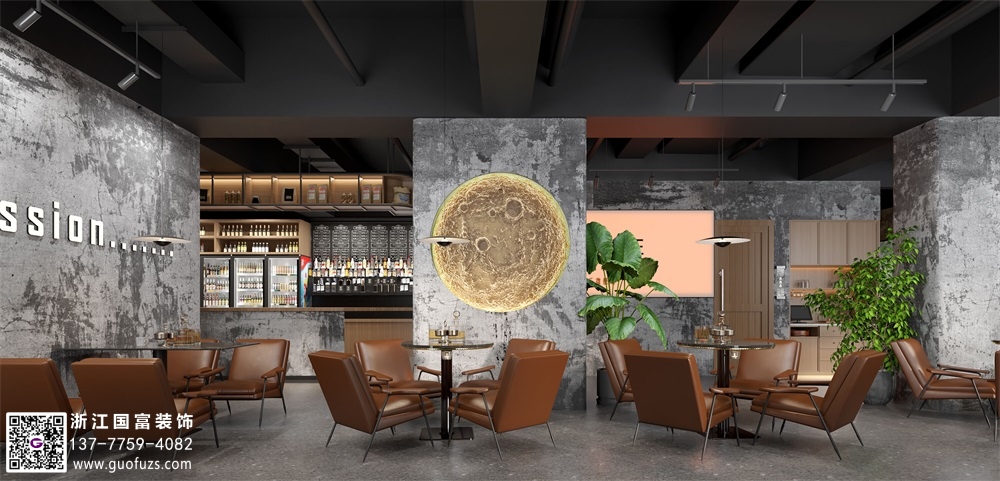 富陽水泥工業(yè)風(fēng)清吧設(shè)計(jì)裝修案例效果圖