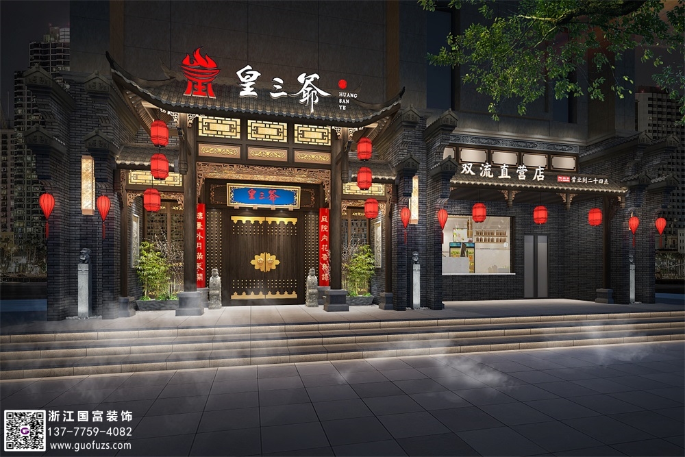 黃三爺火鍋店裝修設(shè)計案例效果圖